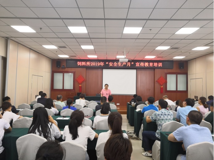 6月25日,为保障我所科研及各项工作的顺利开展,加强全所职工的安全生产意识、责任意识和红线意识,切实履行我院关于“防风险保平安迎大庆”有关要求。饲料研究所在六楼会议室由吴子林副所长主持召开了2019年“安全生产月”宣传教育培训会。